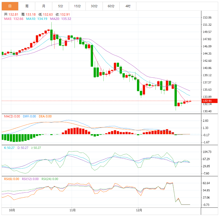 也就是说,美元兑日元的目标是12月15日至20日下行的23.6%斐波那契回档位,接近132.30。