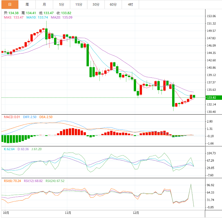 基本面上,美元/日元整理于133.65附近,刷新盘中低点,录得7年来首次出现下跌的日线表现。在这期间,美元/日元跌破7日上升趋势线,吸引空头。日本央行(BoJ)在一天内第二次宣布了计划外的债券购买操作。早些时候,有报导称日本央行将购买紧急债券。没有提供关于日本央行购债行动的进一步细节。