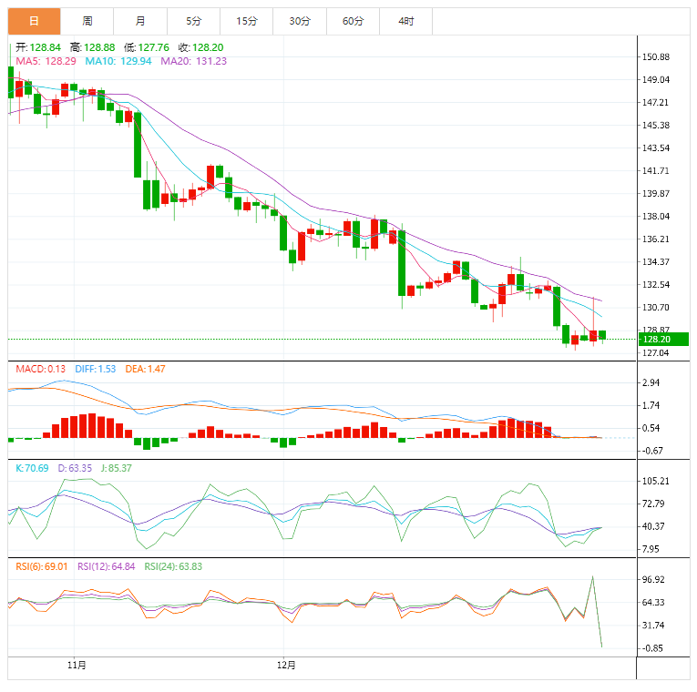 技术面上,美元兑日元未能在主要看空通道外长期持有,昨日以强烈的负面走势交易,并再次稳定在128.90下方,这将价格推回到主要看空趋势,并朝着从127.10开始并延伸至126.35的负面目标前进。