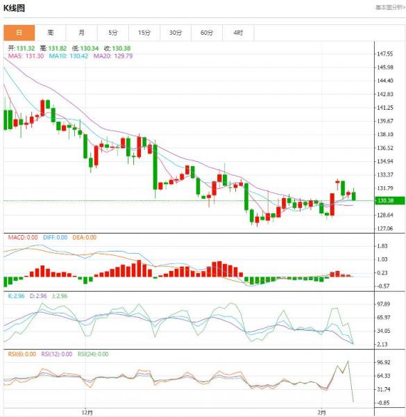 交易策略:日内建议寻求131.15上方做多,止损130.80,先看132.00。