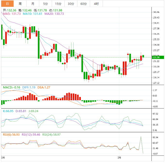 因此,预计在接下来的交易中会看到更多的积极交易,注意到突破上述目标将把价格推到134.70区域作为下一个主要目标,而突破131.25代表负面因素,将迫使价格再次转向下跌。