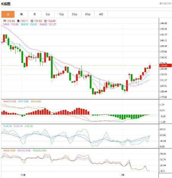 交易策略:日内建议寻求133.70上方做多,紧设止损,先看134.50附近。