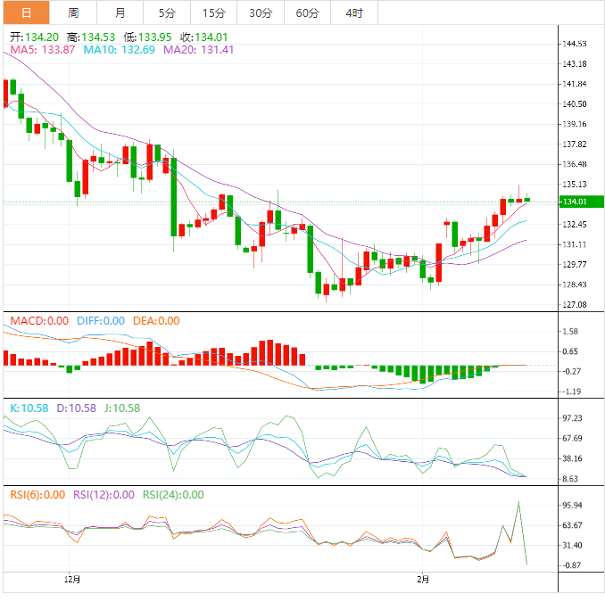 美元兑日元已经舒服地建立在强大的200周期指数移动平均线(EMA) 132.00之上,这表明未来还有更多的上行空间。