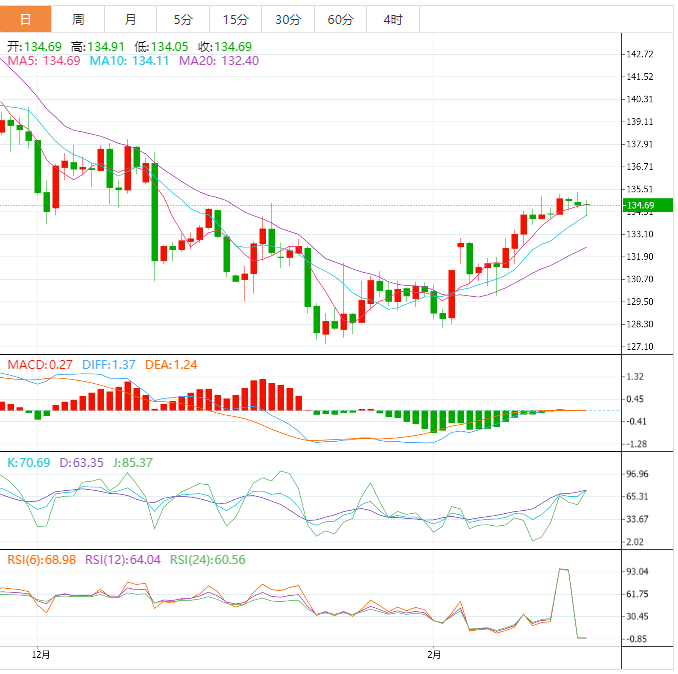 基本面上,日本央行候任行长植田和男发表了当选后的首次讲话,美元/日元依然活跃。美元/日元波动于70个点区间,并返回至均值附近。美元/日元波动率扩大后出现收缩,因此美元/日元处在盘整当中。