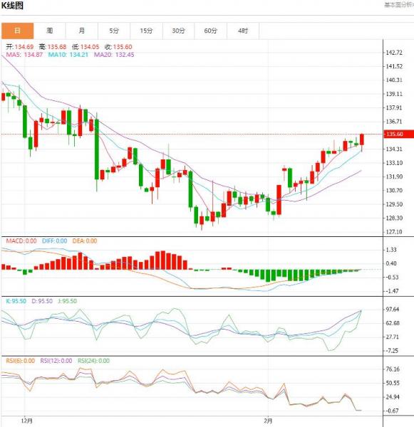 交易策略:日内建议134.90下方做空,紧设止损,下破134.00跟进。