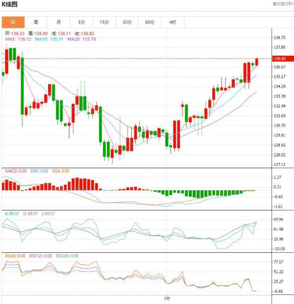 交易策略:日内建议寻求回调在135.80一线企稳重新做多机会。