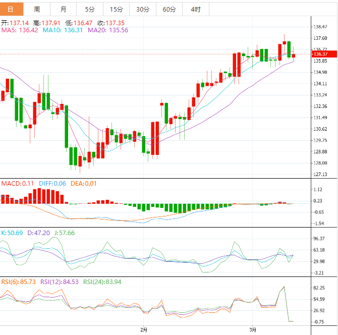 技术面上,美元兑日元面临着攻击看涨通道支撑线的负面压力,但今天开始,它以明显的积极势头在该支撑位上方交易,这为即将到来的一段时间恢复预期的看涨趋势提供了机会,其目标水平将从测试137.70开始。EMA50从下方支撑了价格,加强了预期看涨趋势继续下去的可能性,此外,随机因素现在提供了明确的积极信号。