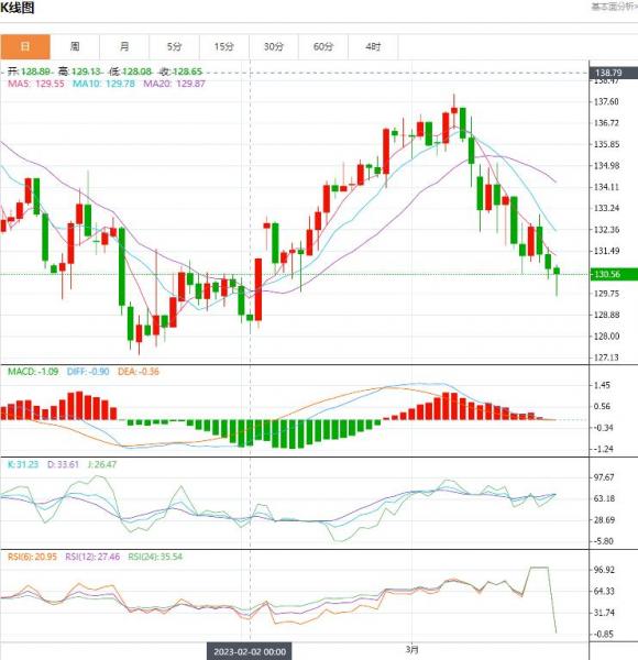 日元在当天早些时候跌破了象征性的 130 线,这是自 2 月 3 日以来的首次。在北美时段,美元/日元交投于 130.17,当日下跌 0.55%。日元在 3 月份表现出色,兑美元汇率上涨 4.6%。