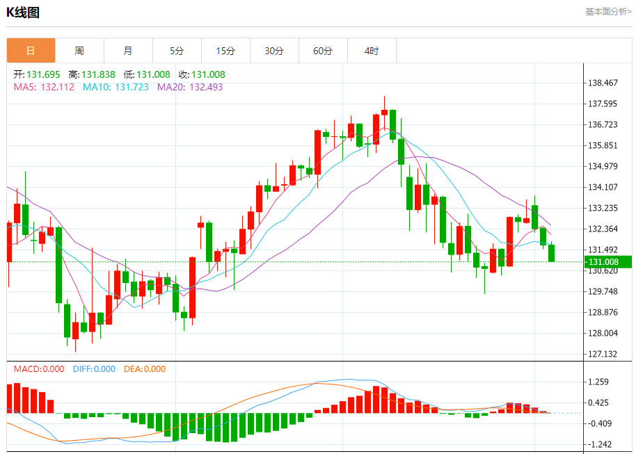今天的预期交易区间在130.40支撑和132.00阻力之间