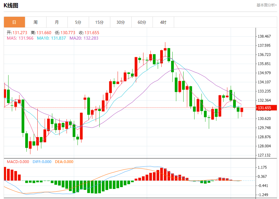 今天的预期交易区间在130.10支撑和131.80阻力之间