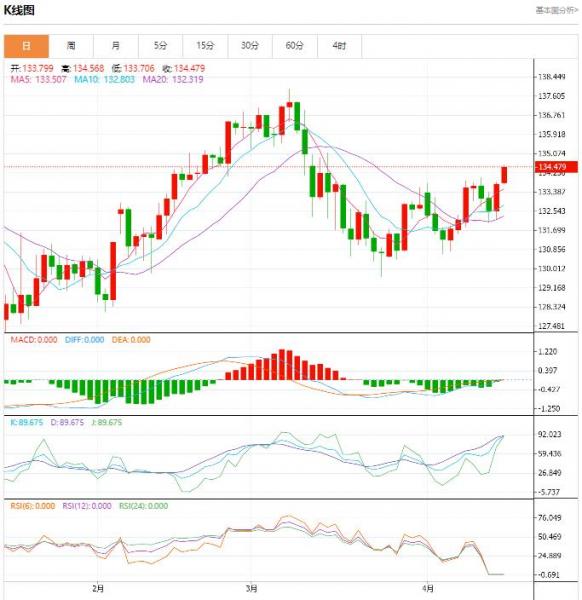 日元在周五受到打击,美元/日元上涨 0.90%。日元周一小幅走低,最低跌至 134.22,为 3 月 15 日以来的最低水平。随着美联储将在 5 月加息的预期升温,日元可能继续承压并跌向象征性的 135 一线。