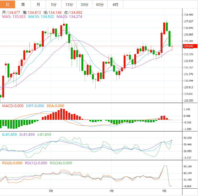 基本面上,美元兑日元接近134.50附近的一周底部。该货币对连续第三日下跌,同时试探了21日EMA均线和自3月24日以来的上行支撑线,接近134.40-50。该货币对多次未能收盘突破138.00,加上汇价回调突破此前的支撑区域135.25-15(包括2月中旬以来的多重水平)将令美元兑日元空头充满希望。