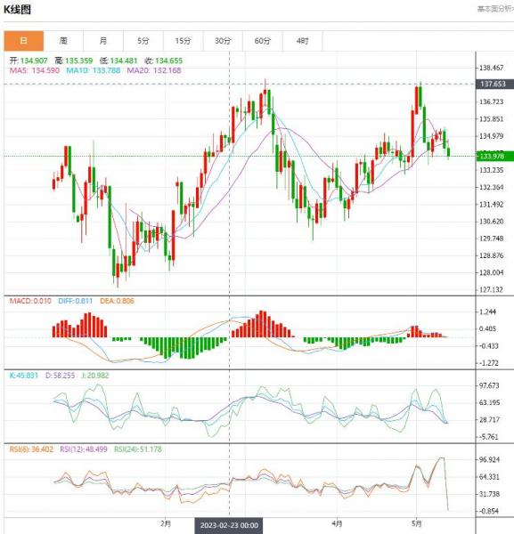 交易策略:日内建议略倾向在134.40下方轻仓做空,止损134.70上方,先看133.50。