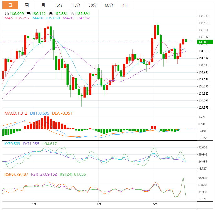 基本面上,美元/日元已经跌破136.00关键支撑。投资者正观望白宫和国会共和党人之间的美国债务上限谈判,预计美元/日元将继续处于紧张状态。继周一大幅上涨后,亚市早盘标准普尔500指数期货略现下跌,表明总体维持风险偏好的市场情绪略现谨慎。美联储(FED)正在考虑暂停其积极的加息路径,美股仍然处于上涨轨道。美国地区银行信贷条件紧缩导緻小规模企业的贷款发放量下降,而暂停政策紧缩紧箍咒将让这些企业鬆绑。