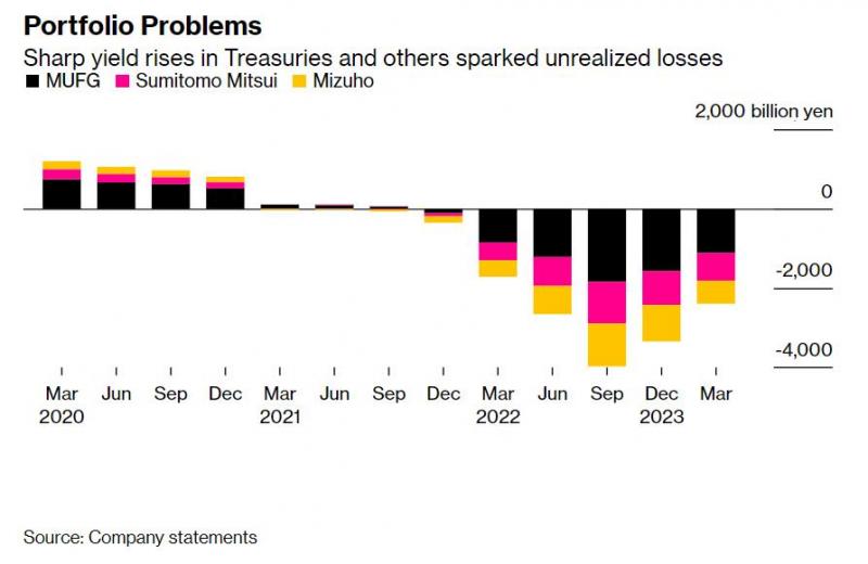 去年美联储开始大幅加息,导致瑞穗和其他日本银行持有的海外债券出现大幅未实现亏损。它们在最近一个季度将部分帐面损失转换为已实现的损失,以便在4月份开始的新财年之前清理资产负债表。