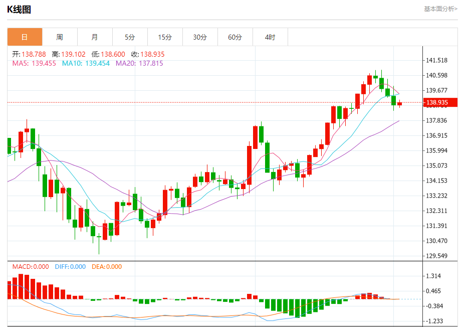 周五纽盘,日元兑美元交投于138.937,涨幅为0.10%。