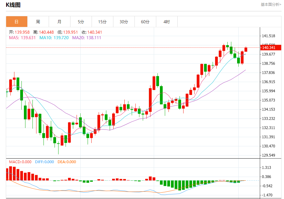 今日周一,截止目前美元兑日元报140.347,上涨0.27%。