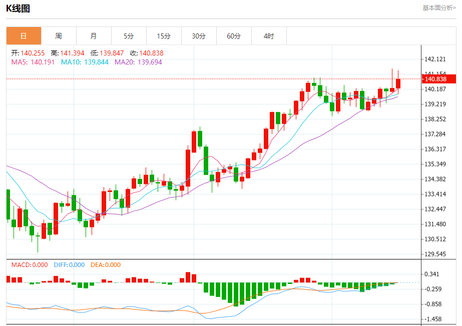 ÖÜÎåŦÅÌ£¬ÈÕÔª¶ÒÃÀÔª½»Í¶ÓÚ140.848£¬ÕÇ·ùΪ0.42%¡£