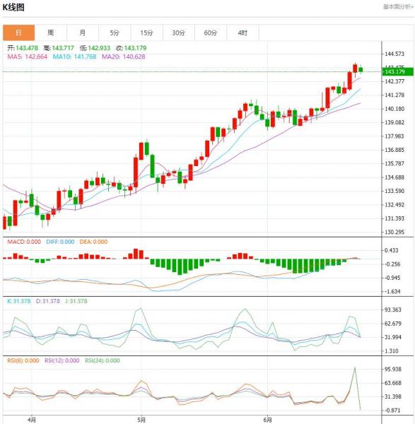 交易策略:日内建议维持在143.00上方继续做多,设置移动止损,上看144.00一线。