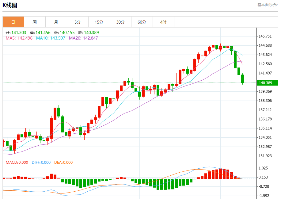 ÖܶþŦÅÌ£¬ÈÕÔª¶ÒÃÀÔª½»Í¶ÓÚ140.398£¬µø·ùΪ0.65%¡£