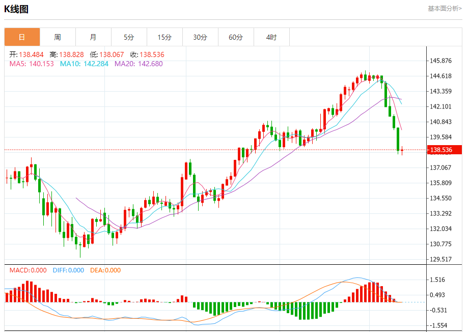 周四纽盘,日元兑美元交投于138.538,涨幅为0.03%。