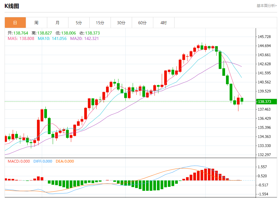 今天的预期交易区间在137.60支撑和139.17阻力之间