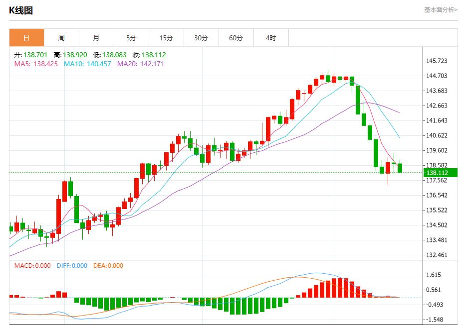 周二纽盘,日元兑美元交投于138.121,跌幅为0.42%。