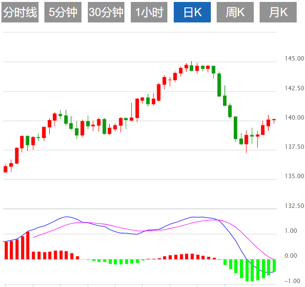 今日预期交易区间在139.70支撑和141.10阻力之间