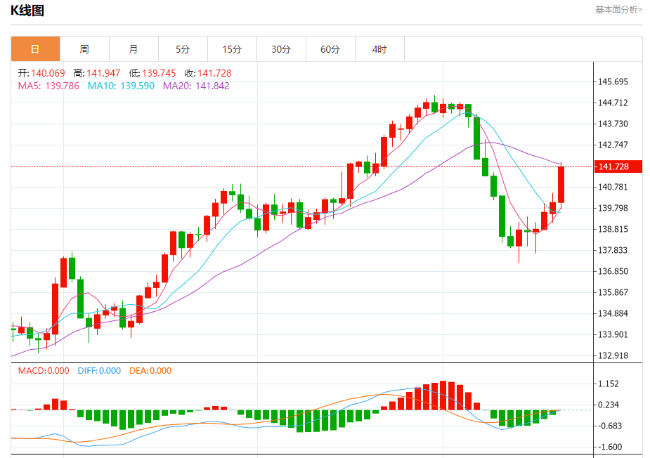周五纽盘,日元兑美元交投于141.742,涨幅为1.19%。