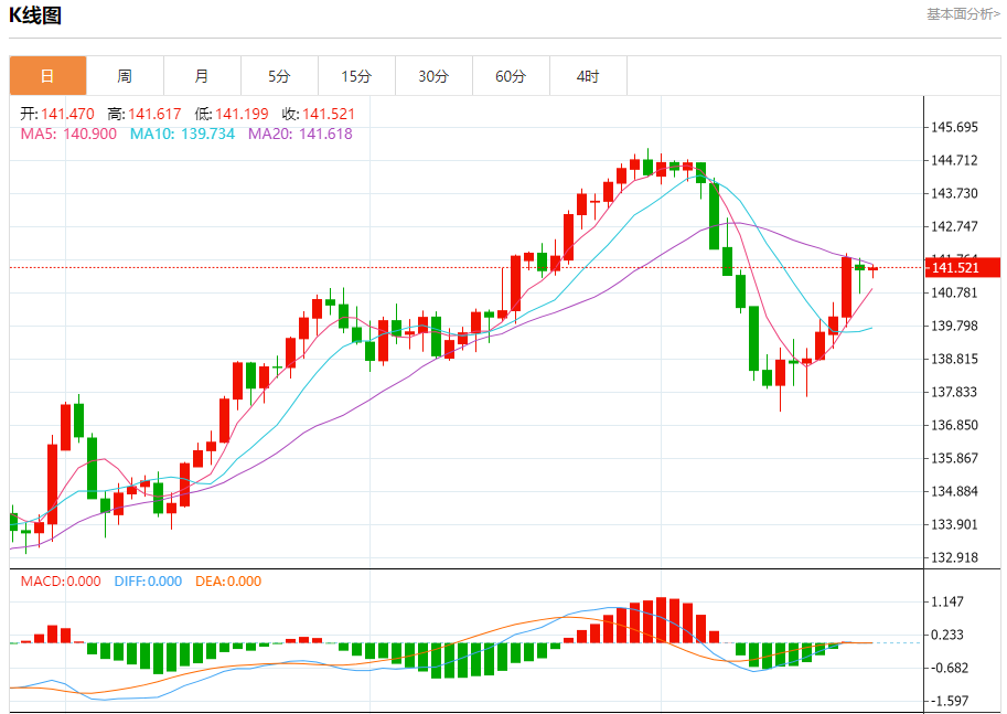 今日周二,截止目前美元兑日元报141.530,上涨0.04%。