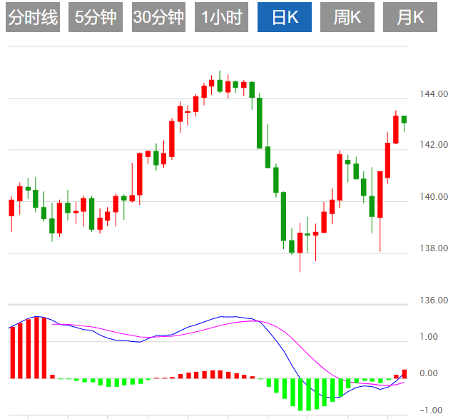 今日预期交易区间:在141.50支撑和145.00阻力之间。