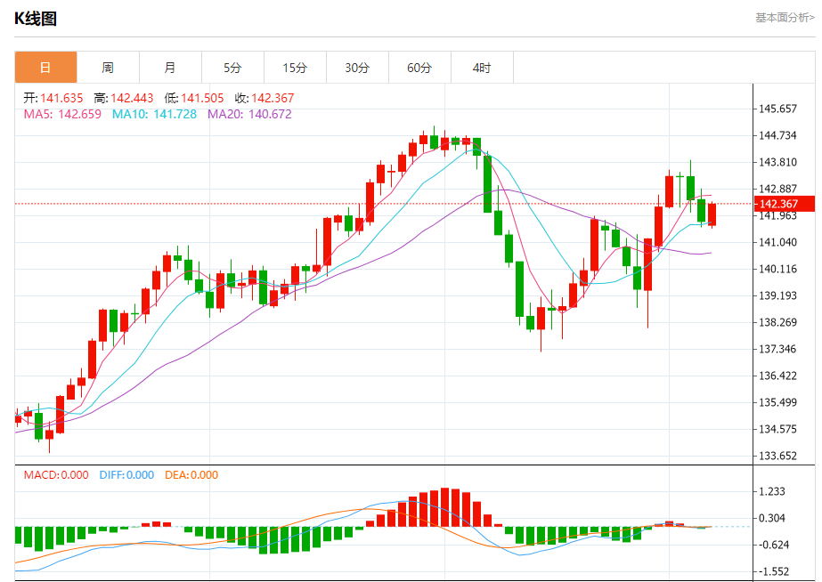 今日周一,截止目前美元兑日元报142.381,上涨0.43%。