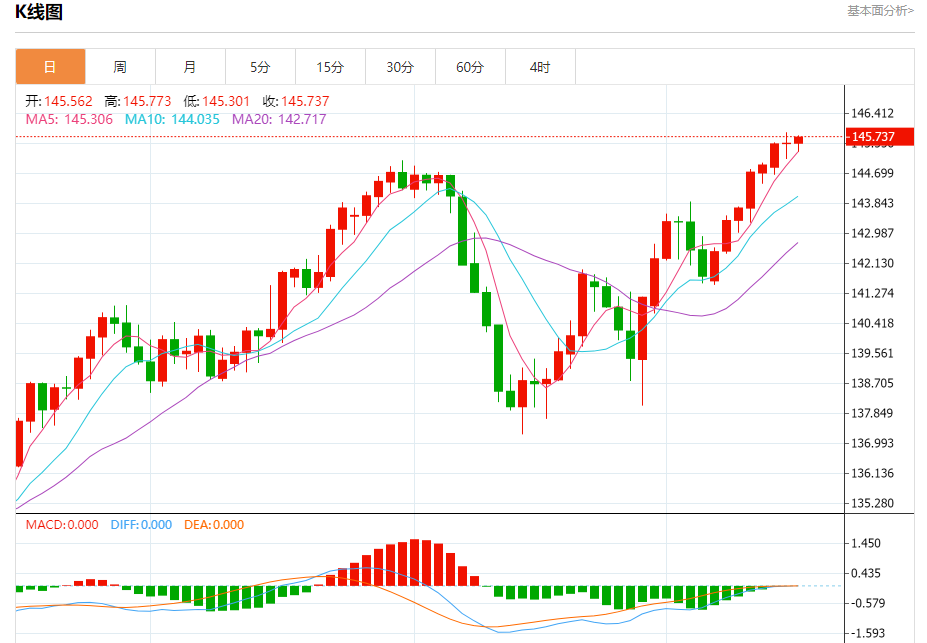 今天的预期交易区间在144.80支撑和146.40阻力之间