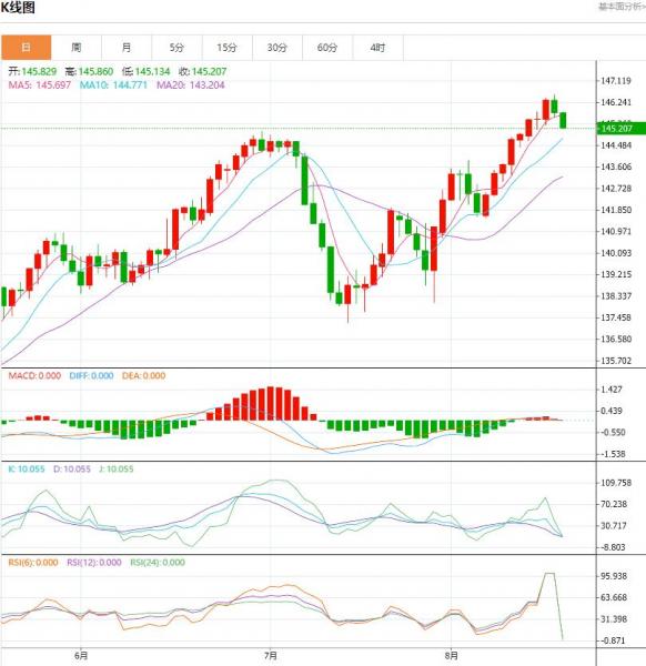 周五盘中,日元/美元下跌至-0.625,跌幅-0.43%。美元兑日元创数月新高,日本当局仍显静默。
