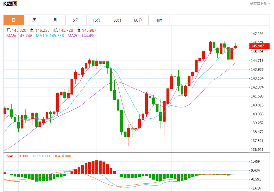 今天的预期交易区间在145.30支撑和147.00阻力之间