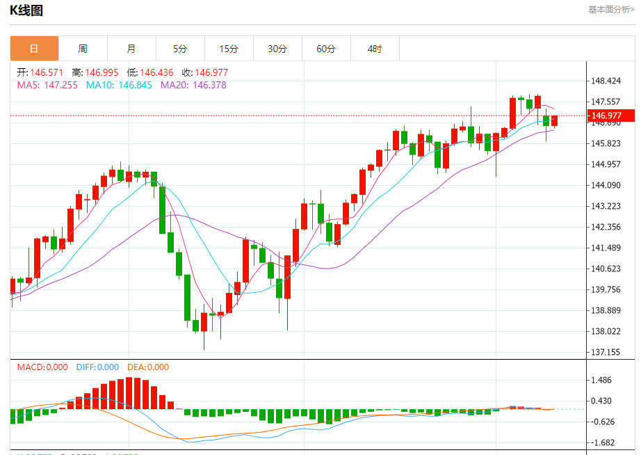 今日周二,截止目前美元兑日元报146.992,上涨0.28%。