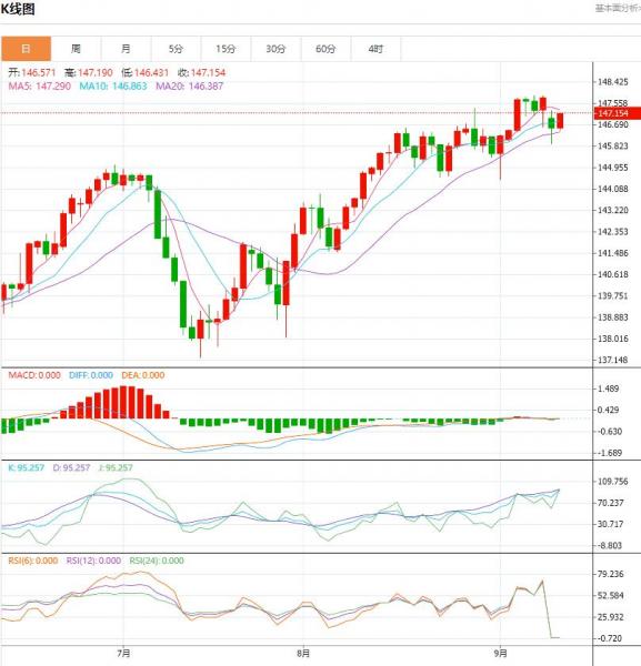 行情分析:汇价高见147.190,低见146.431。上一交易日,汇价收于146.572。基本面上看,在美国市场关注本周重要的8月通胀数据之际,日本暗示可能提前结束宽松货币政策。美元兑日元波动最大,在日本央行行长植田和男表示有可能结束发达国家中最后一个关键的负利率后,日元兑美元汇率飙升逾1%。植田表示,当2%的通胀目标实现在即时,央行可能会结束实施了7年的负利率政策。技术面上看,美日H4级别受到日本央行警告的影响进一步下行,目前位于48日多空分界线之下,由于日本央行可能会出其不意的干预货币市场,不排除汇价继续测试145支撑带。