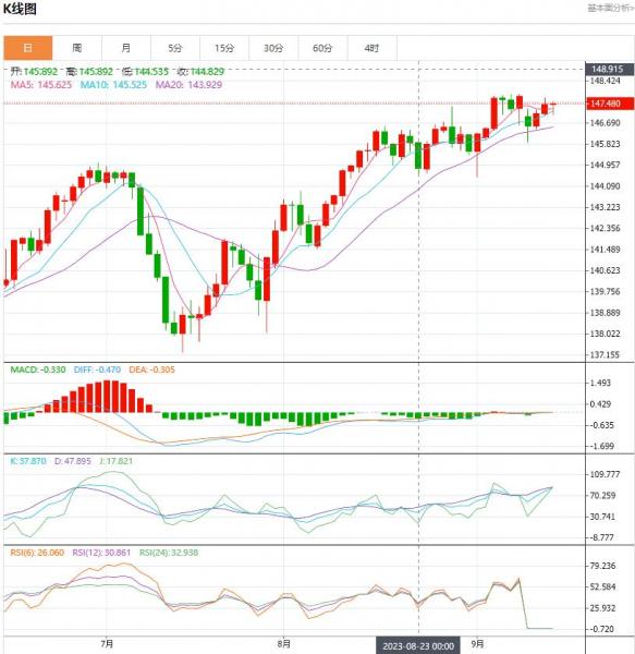 周四盘中,日元/美元下跌至-0.019,跌幅-0.01%。美元/日元技术面显示有可能测试2022年10月31日高点。美元/日元、欧元/日元通常在9月份上涨。