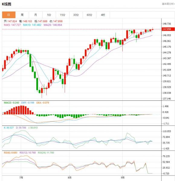 行情分析:汇价高见148.163,低见147.688。基本面上看,尽管日本央行总裁植田和男的讲话引发外界猜测日本央行即将放弃超宽松政策,但市场预期日本央行周五将维持超低利率,并向市场保证货币刺激政策至少目前不会改变。加之美联储本周的利率会议也召开在即,若美联储对今后的利率前景继续保持鹰派态度的话,势必刺激美元兑日元继续尝试冲高。技术面上看,美元/日元周二吸引了一些逢低买盘,尽管其难以利用小幅上涨的机会,且仍低于上周触及的2022年11月以来的最高水平。现货价格交投于147.70区域附近,当日涨幅不到0.10%,交易者热切等待本周关键央行事件风险。