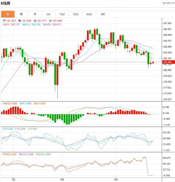 有趣的是,在前一天盘中暴跌 205 点之后,9 月 22 日上周五出现的价格走势小幅回升已成功止住于前破裂上升通道支撑位(自 2023 年 8 月 23 日低点起)的回调阻力处,上周四(9 月 21 日)的 61.8% 斐波那契回撤位从 182.86 高点跌至 180.81 低点。