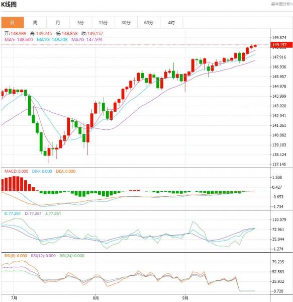 交易策略:可以在149.45---148.75的区间下限买入,有效破位30个点止损,目标在区间的上限。