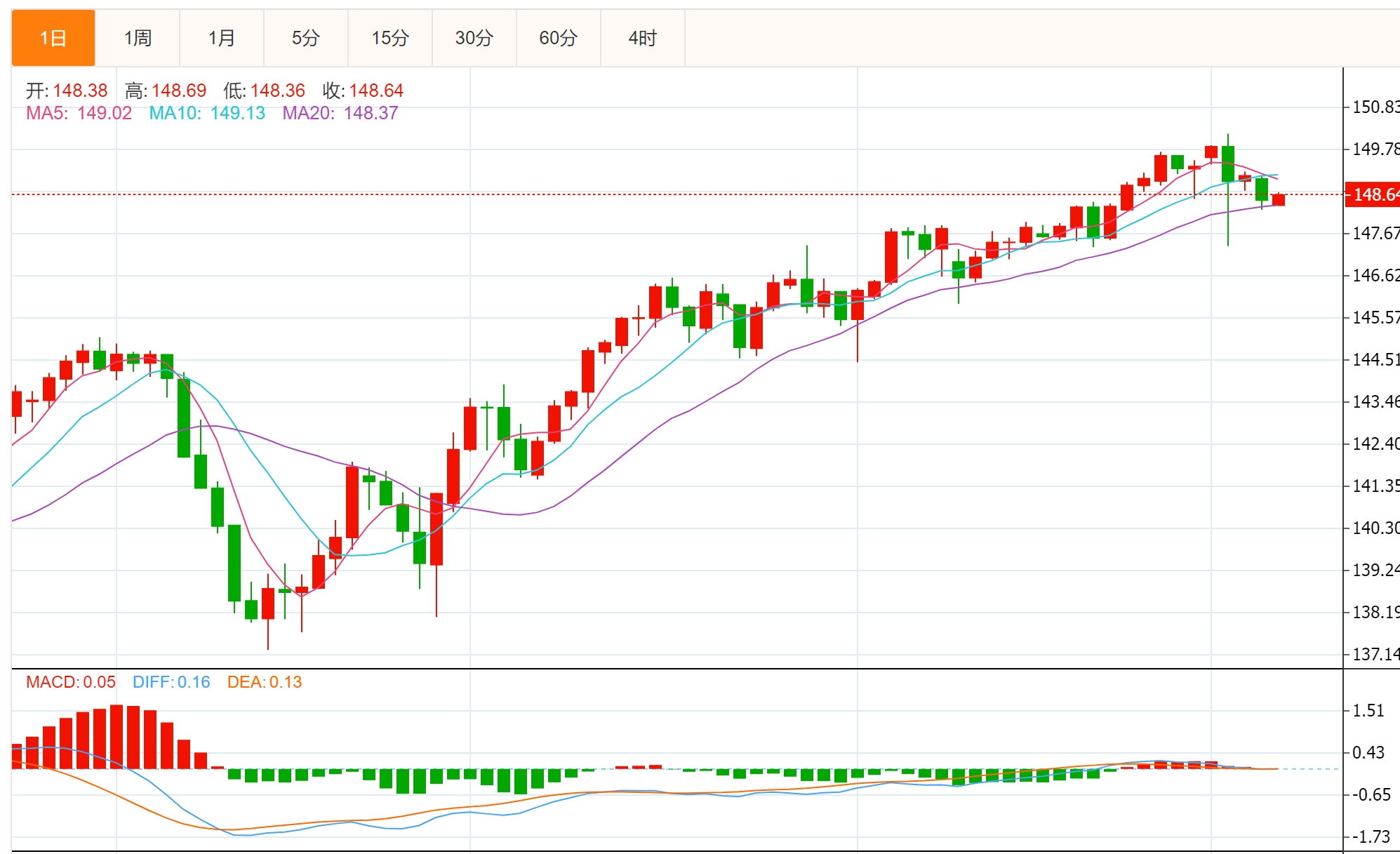 然而,日本家庭支出和工资的跃升将支持跌破148.405支撑位,目标是146.649支撑位和50日均线。146.649支撑位的买盘压力可能会加剧,50日均线与支撑位汇合。14天RSI为54.47,表明美元/日元在进入超买区域之前将升至150.293阻力位。