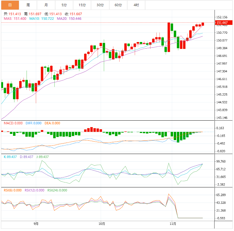 市场人士将密切关注周二公布的美国10月份消费者价格指数(CPI)。周三,日本将公布第三季度国内生产总值(GDP),预计环比收缩0.1%,而之前的数据为增长1.2%。此外,美国零售销售和生产者价格指数(PPI)也将公布。交易者将从这些数据中寻找线索,并在美元兑日元货币对周围寻找交易机会。