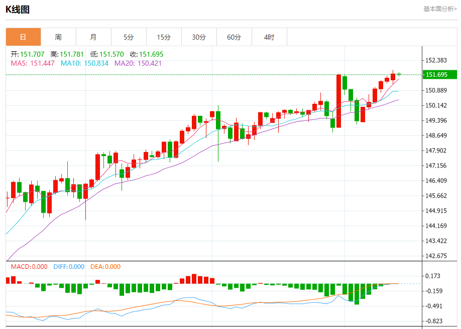 今天的预期交易区间在151.10支撑和152.50阻力之间