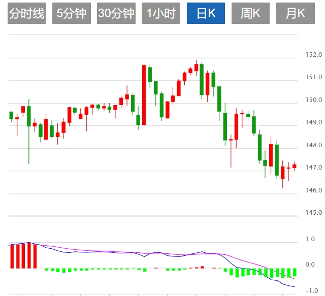 美元的迅速反弹使美元/日元从日低点146.56中提振,周二该货币对收于147.20,几乎保持不变。从更广泛的角度来看,美元/日元正从上周五触及的三个月低点146.23反弹,追随美元的上涨。