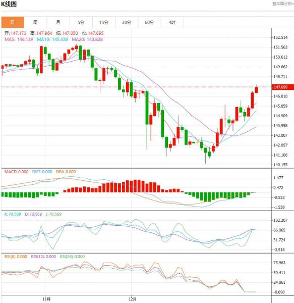 交易策略:可以在147.85---146.75的区间下限买入,有效破位40个点止损,目标在区间的上限。