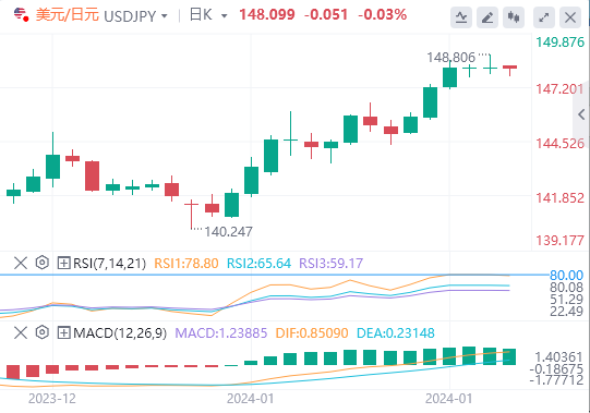 今天的预期交易区间在147.00支撑位和148.50阻力位之间