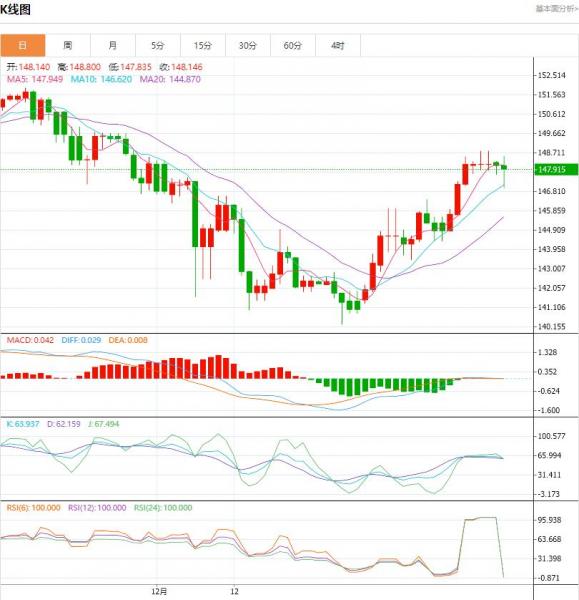 阻力位:148.80;149.40