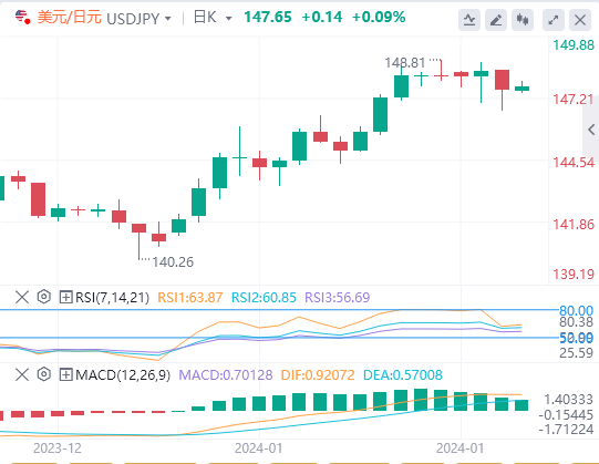 今天的预期交易区间在147.00支撑位和148.50阻力位之间