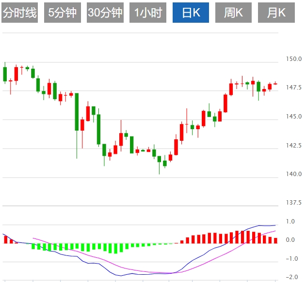 技术上,美元/日元滞后指标14天相对强弱指数(RSI)位于50水平上方,显示看涨势头强劲,可支持美元/日元在心理价位149.00附近的阻力区域上行。